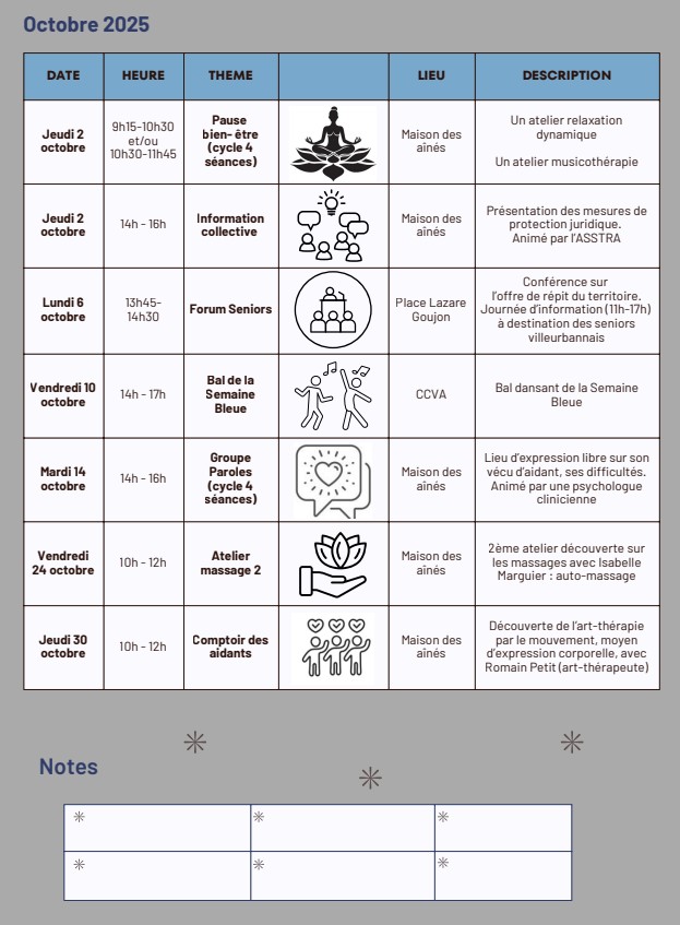 Que ce soit par des groupe de parole, des ateliers de relaxation ou de musicothérapie, ou encore tout simplement par le fait de passer un bon moment au Comptoir des aidants, n’hésitez pas à vous inscrire !